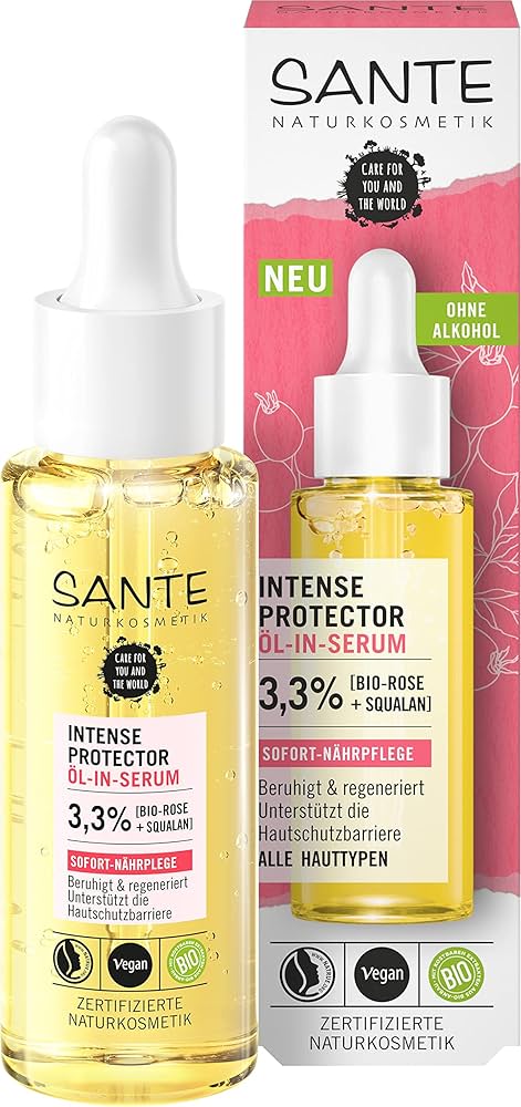 Sante Naturkosmetik Siero cosmetico naturale Bio Rose & Squalan, cura nutriente immediata lenita,pelle rigenerata una sensazione morbida sulla pelle, vegano, protezione intensa, olio in siero, 30 ml